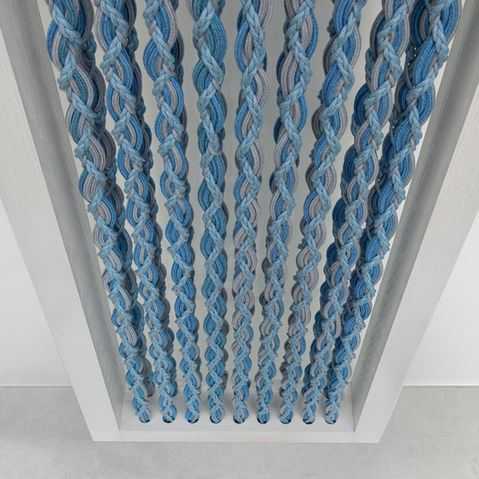 Veil Line is a semi-transparent room divider crafted from hand-knotted rope and ash frame, merging linear precision with a soft, tactile feel. The intricate knots form a delicate, woven pattern that gently diffuses light, providing both privacy and a graceful aesthetic.